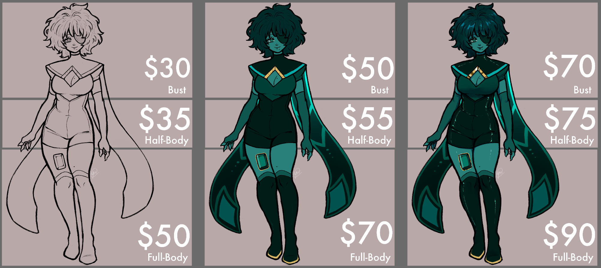 All prices above are base prices. Things that might increase the price are complex character designs, number of characters, not being able to provide a good visual reference, complex backgrounds and amount of detail in the image in general.